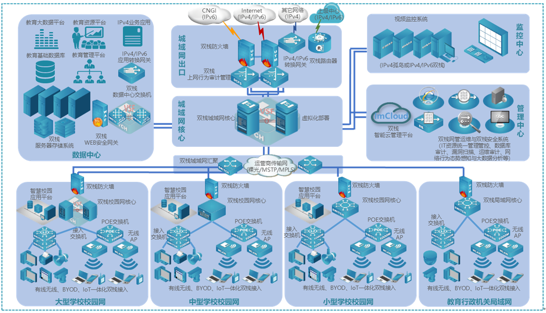 如下图所示,基于IPv6的“万物互联”教育城域网: